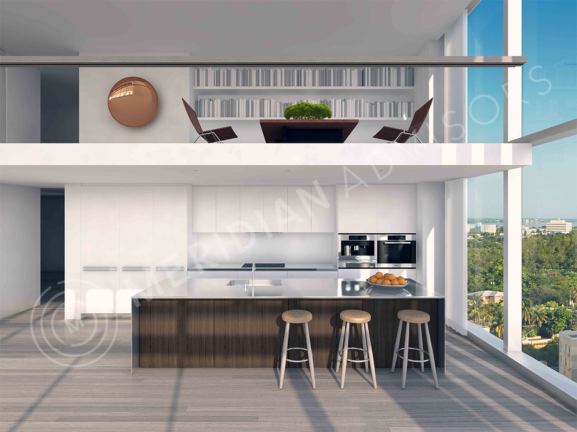 The residences were designed to be in a complete, move-in condition, with the idea being to give residents what they need even before they know it themselves, an ideal for resort living. Various custom-designed elements by John Pawson include seating and wall elements in the living  rooms, and Bulthaup kitchens with Miele and Subzero appliances. Downstairs is a dedicated residents-only entrance with two dedicated elevators and a doorman, and of course, living at the EDITION, give you access to the services and amenities of a world-class hotel.